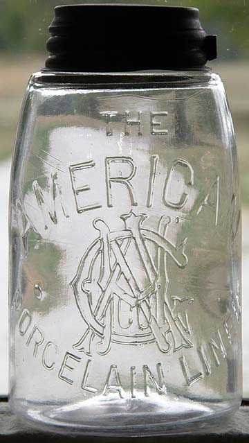 1887. CLEAR Midget Pint NAGCo AMERICAN PORCELAIN LINED