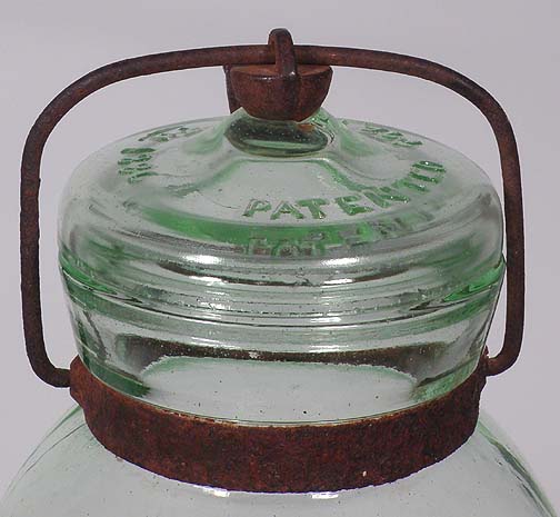 Closure: exact matching color correct glass lid (small dimple chip) and correct original iron clamp assembly