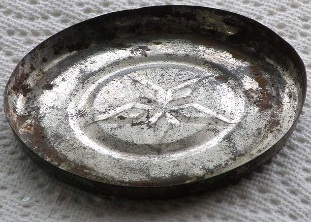 Closure: Grooved ring wax sealer mouth finish for a tin cap sealed with wax. Comes with an old tin cap into which is lightly stamped a 5-pointed star figure. It is not typical for marked wax sealer lids to be "debossed".....any marking is normally raised. Therefore the star figure may not be an original feature of the lid.