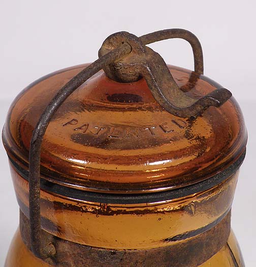 Closure: original glass lid with 1886 patent date and original 3-piece iron clamp assembly