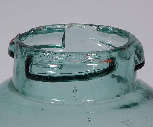 Closure: original glass cap with three internal lugs to engage the molded neck ramps of the jar