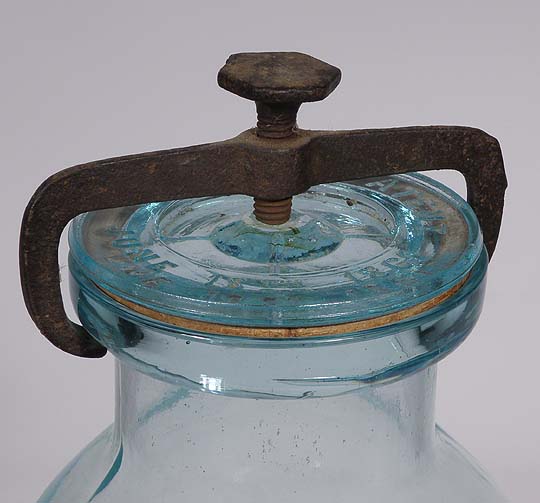 Closure: original glass lid, original sealing gasket, and original cast iron yoke clamp with thumbscrew