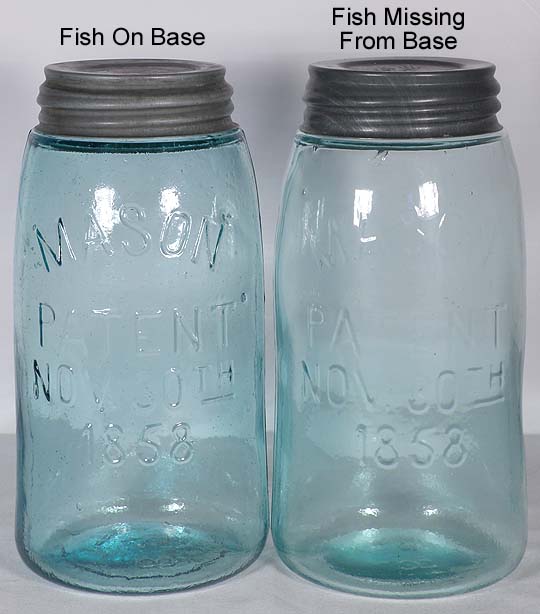 2572. FISH on base "MASON" PAT 1858 Quart and Mate