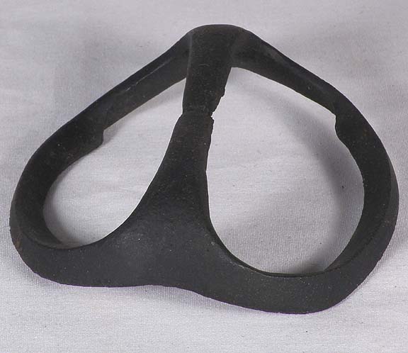 An original cast iron cage-style clamp for a Griffens Patent jar, large mouth size. Looks brand new, but probably an unused old-stock item, with all black paint intact. Attracts a magnet. Fits most sizes of Griffen jars that take the standard large mouth lid. Note, to determine whether your jar is a Griffens or a Ludlow, check the length of the neck ramps. A Griffens jar has long neck ramps, whereas a Ludlow jar has short neck ramps (so short that they appear almost round).