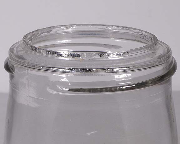 Condition: Roughness and flaking of the ground mouth all around. As with almost every known example of this jar, the glass has a few subtle dings and/or fisheyes embedded in the glass as shown.